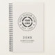 Simple custom round company logo with slogan and website address on colour editable ivory background, no minimum order quantity and no setup fee, great business planner with logo.
