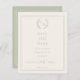 A soft ivory colored background, sage green colored frame and text. Personalize and add your monogram initials, names and the details.
