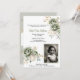 elebrate life’s beautiful milestones with this elegant birthday invitation, featuring ivory white and sage green watercolor greenery in soft pastel green and cream hues. Small hints of soft golden leaves can also be spotted. Perfect for any milestone birthday from 60 to 90, this card includes a dedicated space to add a custom photo of the celebrant -whether it's a cherished toddler or baby photo, or a more recent picture. The design effortlessly blends vintage charm with modern elegance, making it ideal for a feminine celebration.