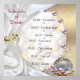 Unique personalised poster featuring gold, pearls, and gold rings threaded through ivory silk with a pinkish marble background.