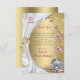 Unique personalised invitation cards featuring gold lace, pearls, and gold rings threaded through ivory silk.