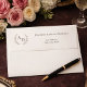 Ivory colored background. Decorated with a wreath. Personalize and add your names, address and monogram, initials. Warm taupe colored text.