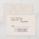 Elegant wedding RSVP card done in an ivory textured looking front with fancy gold tone graphic text reading RSVP. The back of the card is done in a tan and ivory flourish damask background. Personalise all the text for your special day. Matching products are available.