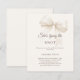 A soft ivory colored background, decorated with a bow. Personalize and add a name and party details.