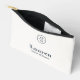 Chic and elegant with minimalist aesthetic. This lovely simple accessory pouch features a contemporary set of fonts in midnight blue and wedding couple monogram against a soft ivory background.