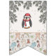 These gender neutral winter Baby Shower "Welcome Baby" bunting flags feature cute hand-drawn illustrations of Christmas baby bodysuits, plush animals (Teddy Bear, Reindeer, Penguin), bottles, bibs, pacifiers, wrapped presents and tiny yellow stars. Elegant ivory background.