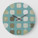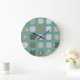 Ivory White Beige Teal Blue Round Squares Pattern Large Clock