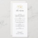 This chic and stylish wedding menu features an optional table number and menu. This designs includes a contemporary set of fonts and script elements against ivory and white backgrounds, alongside delicate floral outlines in faux gold.