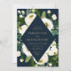 The lovely green and white flowers nicely complement the navy blue background. A nice design for your summer wedding.