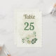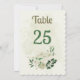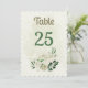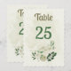 Beautiful romantic table number card featuring ivory white flowers and some pretty green leaves .