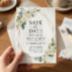 Ivory White Green Floral Modern Gold Geometric Save The Date