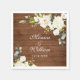Ivory White Roses Greenery Rustic Wood Wedding Napkin