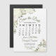These beautiful magnetic wedding save the date cards feature a rustic yet elegant hand painted floral design with watercolor roses, blossoms, and flowers in shades of ivory, white, and cream, surrounded by a bevy of eucalyptus leaves, greenery, and foliage. There is a customisable calendar showing the month of your wedding with a heart around your special day. This stylish boho chic card is a great way to make sure your friends and family are aware of your upcoming wedding.