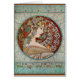 Vintage art nouveau design of woman with ivy accents and garland on a pale blue background. Fine art by Czech painter Alfons (Alphonse) Mucha.