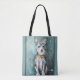 "Izzy's Day" dog lovers white and blue terrier tote bag by The Painted Girl collection featuring original hand painted art on the things you love.