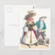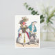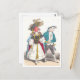 This postcard is a reproduction of a vintage J.J. Grandville illustration showing a bird and fish dressed up in old-fashioned clothes.
