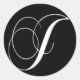 J monogram with a black background, white script initial and silver border. Perfect sticker for your wedding envelopes, gift bags, or other decor for your elegant wedding.