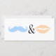 Super cute Jack and Jill wedding shower ticket style invitation features a blue moustache and peach lipstick kiss mark with the words Jack and Jill overlaying them. The text in fun, black font is customisable to suit your bride and grooms needs for their Jack and Jill wedding shower. The invitation has an area on the right had side separated by a black dotted line where you can cut it with scissors and make it a ticket stub for the paid admission into the Jack and Jill party.