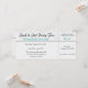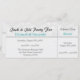 Ticket style invitation is perfect for Jack and Jill style wedding showers and bachelorette parties. The invitation is solid light grey on the bottom with medium grey damask pattern along the top. The left side of the invitation has customisable text for your party information. The far right side is separated by a dotted line, perfect for cutting off as the ticket stub for paid admission and advanced tickets sales for the Jack and Jill or bachelorette party admission. The dark grey and blue text is all fully customisable to suit your needs.