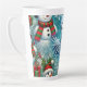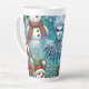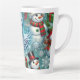 A whimsical latte mug design featuring Jack Frost and a cheerful snowman. Jack Frost is illustrated with icy blue tones, frost patterns, and snowflake accents, while the snowman has a cozy scarf, carrot nose, and a top hat. The background showcases a snowy winter scene with soft, frosty gradients and twinkling stars. Perfect for sipping warm drinks during the festive season!