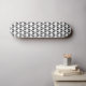 The seamless pattern consists clown hair that is black and forms the white body. The head is white with a black and white dunce cap. The elements of the of the images flow together making it feel a bit strange.
