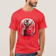 I give wanted to give this a 4 instead of a 5 because these Basic DARK T0shirts run unexpectedly SLIM or Narrow. Which is great if you do not have a potbelly, but I have a paunch. It isn't the shirt's fault that I've got a beer belly. The design and shirt itself is a quality cotton shirt. The color is more of a deep purple, but still a very pretty color. The Basic DARK T-shirts run a bit SLIMMER than the Basic Ts. The neck is a fraction narrower (or seems to be narrower) also. I'm a paunchy middle-aged woman and my neck is 12 inches (31cm) thick and the neckline fell about the same as in the photo of the man, and I had the desire to tug it a bit. So if you're a thick necked man or like loose shirts, be aware these are slimmer shirts. Once I get rid of my lockdown paunch it'll look great. The shirt washed well in cold water with no apparent bleeding. We don't have a dryer, so it hung dry. Did not shrink. Love the colors and the design. The design looks smaller on my shirt than it does on the model on-line. But still, it looks good on the shirt. The printing looks as it does on the model, just the size seems fractionally smaller. Washed garment in cold water, hung dry and design appeared unaffected.