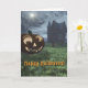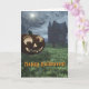 This Halloween greeting card features an original artwork of a grinning Jack-O-Lantern and a spooky haunted house, circled by bats in the moonlight, created by artist Jayne Wilson in Vue d'Esprit. The verse inside reads: At this special time of year when jack-o’-lanterns glow, it gives a welcome chance to send a warm “Hello!” Happy Halloween.