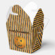 A fun way to hand out your Halloween treats with a happy Jack-o-Lantern pumpkin on a black and orange striped background "take out" box.