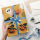 This cute wrapping paper features Jack O lantern Family (Daddy, mummy, son, daughter, and baby).
