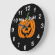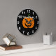 a grimacing Jack O' Lantern made from an orange pumpkin with black triangle eyes and nose and toothy mouth. May contain the words "Happy Halloween!" or "Trick or Treat!" which can be edited.