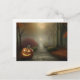 Imagine a moonlit night filled with whispers of the unknown – our postcard transports you to this eerie scene. The jack-o' lantern's flickering light and the shadowy path create an atmosphere of both intrigue and foreboding.