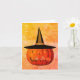 Scary jack-o-lantern pumpkin wearing a witch hat cute Halloween blank note card. I've left the card blank so you can add your own personal message by clicking on Customise. You can also add any text you like to the front of the card. This image is available on many products.