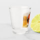 This vintage style shot glass will be the hit of your Halloween Party! It has a jack o'lantern with a black cat poking it's head out of each eye hole. Below it says Let's Get SMASHED. Background is painted a mottled black and orange watercolor.