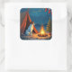 Jack Russell Christmas Camping Night Painting Square Sticker
