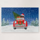 Jack Russell Dog Driving Car In Snow Christmas Jigsaw Puzzle