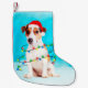 jack russell Dog in snow with Santa Hat Lights Small Christmas Stocking
