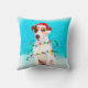 jack russell Dog Sitting in snow with Santa Hat Cushion