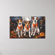 Unleash the spooky spirit with this eerie Halloween design featuring a pack of dogs under a dark, moonlit sky, surrounded by flying bats and glowing pumpkins. Perfect for those who love a touch of frightful fun with their furry friends!