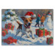 A spirited Jack Russell dashes through the snowy scene, wearing a festive red Christmas hat. The lively winter moment captures the breed’s playful energy and bold personality while celebrating the joyful magic of the holiday season. A heartwarming design full of festive cheer.