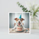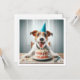 A really funny invitation picturing a Jack Russell Terrier eating a birthday cake messily and wearing a party hat, a great invitation for terrier and dog lovers.