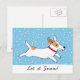 A happy spotted puppy dog running through the winter snow with the title "LET IT SNOW!" A perfect holiday postcard for pet services to customize and send to customers, friends and clients. Great for veterinarians, pet sitters and dog walkers. A fun Christmas postcard for anyone who loves a Jack Russell Terrier. Visit Jenn’s Doodle World for even more products with this cute dog design, as well as more dog breed Xmas cards and gifts.