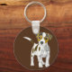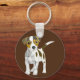 This lovely keychain, zip pull, features my drawing of a Jack Russell terrier puppy against a brown background. The Jack Russell is white with brown patches and a brown and white face with big appealing eyes.