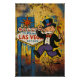 A playful pop-art scene: a dapper, mustached gentleman in a top hat and cane tips his hat as he strides past a dripping, neon-style Welcome to Las Vegas sign. Splattered paint, bold outlines, and retro colors bring casino energy and street-art attitude—perfect for a lively, statement wall.