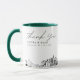 Modern Jacksonville skyline coffee mug favour gift with "thank you" script. The design showcases a stunning sketch with the ability to customise your names and exact location. Enter the Zazzle design tool for additional customisations.