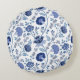 Jacobean Floral 2Way Pattern Blues on White Round Cushion