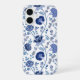 Jacobean Floral Big Pattern Blues on White iPhone 16 Case
