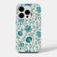 Jacobean Floral Big Pattern Teals on Cream iPhone Case