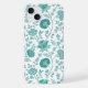 Jacobean Floral Big Pattern Teals on White iPhone Case