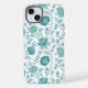 Jacobean Floral Big Pattern Teals on White iPhone Case