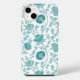 Jacobean Floral Big Pattern Teals on White iPhone Case